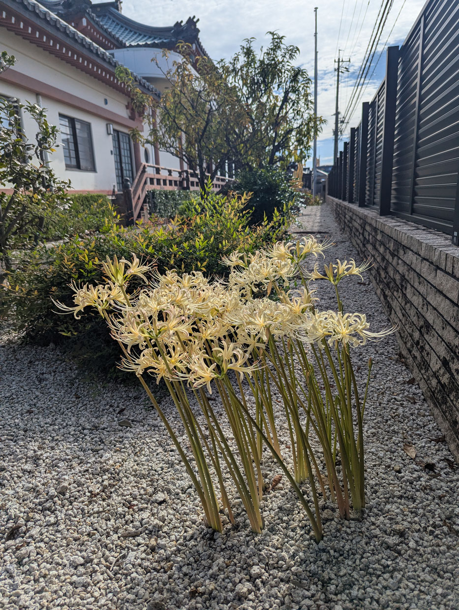 日常 · 01日 10月 2025 彼岸花 今年は暑さのせいか、少雨のせいか、彼岸花の開花が遅い様です。温暖化等の対処すべき問題はございますが、自然の様に何かに文句を言うでもなく、唯々変化に合わせ粛々とすべき事を勤める姿に、忘れてはいけない理が見えます。 合掌 tagPlaceholderカテゴリ: